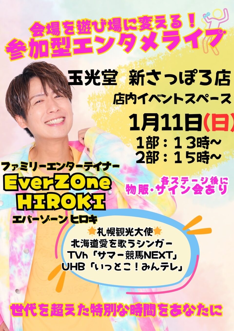 ■インストアライブ2026年1月11日(日)➀13:00-②15:00-玉光堂新さっぽろ店店内ステージ[特典会アリ]※入場無料※当日CD他ご購入の方は、ライブ後の特典会にご参加頂けます